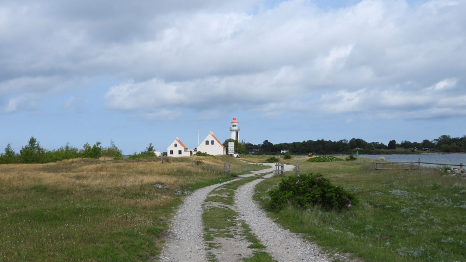 Am Ende der Enebærodde erreichst du den Leuchtturm Enebærodde Fyr, und von hier hast du den Blick über die schmale Rinne Gabet hinüber nach Lodshuse auf der anderen Seite.